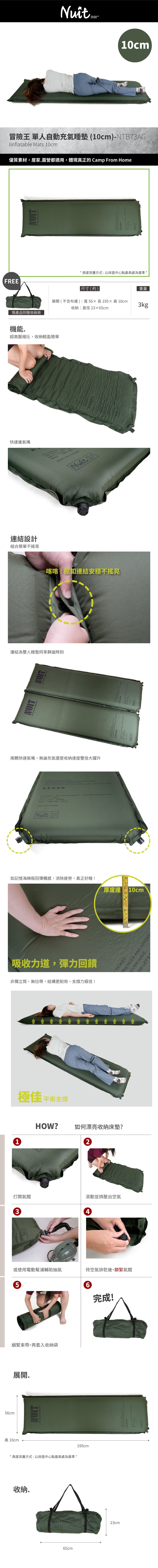 | 商品名稱 | 努特NUIT 冒險王 自動充氣睡墊床10CM |