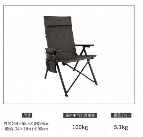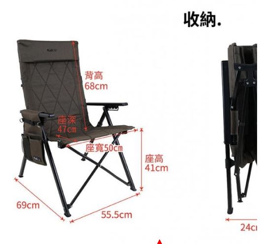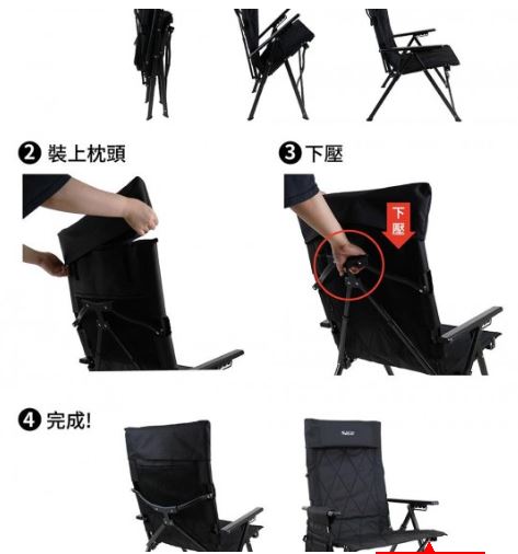 × ※五段調整,無論是閱讀書報、吃飯甚至是午睡,一張搞定 ※優質木扶手,冬天、夏天都適宜,溫和滑順觸感,支撐手肘俱有出色的穩定性 ※椅背大置物空間,書報、雜誌,輕鬆收納 ※椅背展開卡榫,卡榫更緊實,穩定性更佳 ※可拆式頸枕,有效減緩頸部頭靠壓力,調整姿勢達到真正的放鬆 ※穩定防滑大椅腳,四腳耐磨腳套,穩定耐磨防滑易清理 ※消光黑鋁合金骨架,耐重 即使成年人也能舒適的坐著,耐用更強化,高質感!輕收納! ※隨產品附贈收納袋,雙拉鍊橫式收納,可輕鬆放入隨附收納袋內提著走! 注意事項 ※靠椅背時,請勿調整椅背角度並勿將手放置在扶手卡榫中,以免夾傷。 ※調整椅背角度時,兩側扶手需在相同角度,避免骨架歪斜造成損壞或受傷等。 ※請勿讓12歲以下兒童單獨操作扶手調整段數。 ※請勿在椅子上施予瞬間的撞擊力,以免造成椅布及骨架的損壞。 中華民國新型專利第 M625987號 (專利收合機構方式) 商品型號NTC200BK 商品名稱金士曼 鋁合金五段椅 顏色黑 / 軍綠 尺寸(約): 展開尺寸:69*55.5*(H)99cm 收納尺寸:24*18*(H)90cm 承重(約):100kg 重量(約)5.1kg