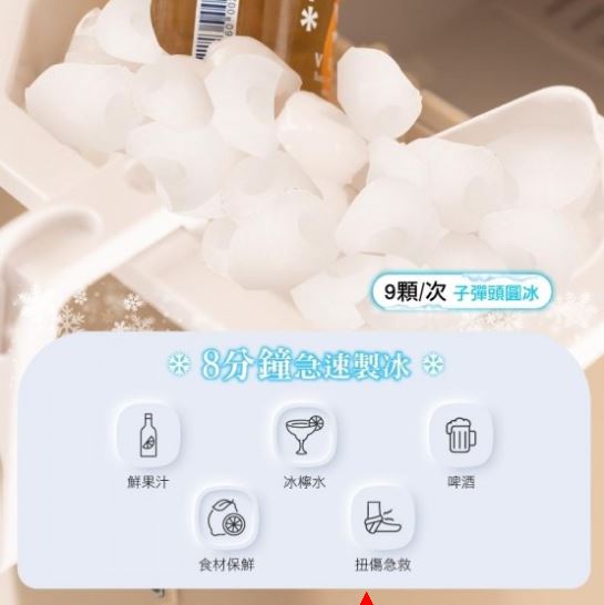 👉8分鐘級速製冰 9顆/次 子彈頭圓冰